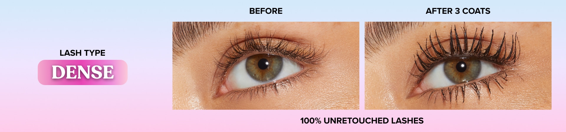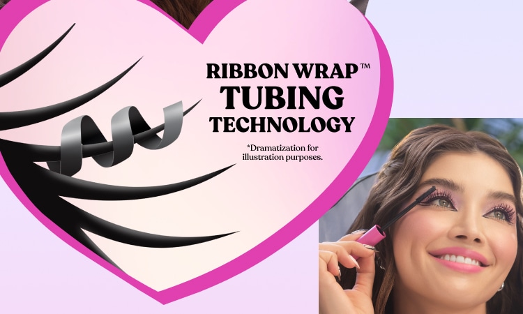 Our transformative Ribbon Wrap™ Technology creates a super-extended tube around lashes, stretching them to unbelievable lengths while our Lash Extension™ Brush sweeps through all lash types, including fine, sparse, short, straight, curly, downward, and dense lashes, wrapping them in our deep black formula and elongating them to outstretched perfection.