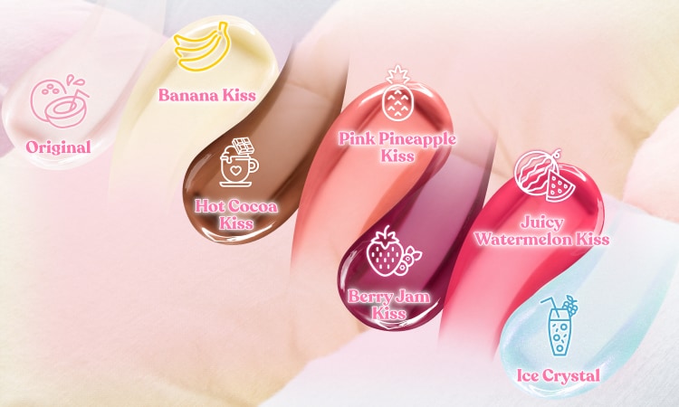 Banana Kiss: Petrolatum, Hydrogenated Polyisobutene, Bis-Diglyceryl Polyacyladipate-2, Octyldodecanol, Ethylene/Propylene/Styrene Copolymer, Polyethylene, Vp/Hexadecene Copolymer, Tocopheryl Acetate, Sodium Hyaluronate, Butyrospermum Parkii (Shea) Butter, Cocos Nucifera (Coconut) Fruit Juice, Cocos Nucifera (Coconut) Liquid Endosperm, Cucumis Sativus (Cucumber) Fruit Extract, Helianthus Annuus (Sunflower) Seed Extract, Hordeum Vulgare (Barley) Extract\Extrait D'Orge, Mangifera Indica (Mango) Seed Butter, Olea Europaea (Olive) Fruit Oil, Persea Gratissima (Avocado) Oil, Ricinus Communis (Castor) Seed Oil, Yogurt Powder, Lactobacillus Ferment, Glycerin, Phytosterols, Menthol, Polydecene, Propylene Glycol Dicaprate, C12-15 Alkyl Benzoate, Water\Aqua\Eau, Sorbitan Oleate,Meteorite Powder, Cholesterol, Butylene/Ethylene/Styrene Copolymer, Silica, Synthetic Fluorphlogopite, Polyglyceryl-10 Heptahydroxystearate, Hydrogenated Castor Oil, Flavor (Aroma), Saccharin, Bht, Tetrahexyldecyl Ascorbate, Phenoxyethanol, [+/- Mica, Titanium Dioxide (CI 77891), Iron Oxides (CI 77491), Iron Oxides (CI 77492), Iron Oxides (CI 77499), Bismuth Oxychloride (CI 77163), Blue 1 Lake (CI 42090), Red 6 (CI 15850), Red 7 (CI 15850), Red 21 (CI 45380), Red 27 (CI 45410), Red 28 (CI 45410), Red 33 (CI 17200), Red 6 Lake (CI 15850), Red 7 Lake (CI 15850), Red 21 Lake (CI 45380), Red 27 Lake (CI 45410), Red 28 Lake (CI 45410), Red 33 Lake (CI 17200), Yellow 5 (CI 19140), Yellow 6 (CI 15985), Yellow 5 Lake (CI 19140), Yellow 6 Lake (CI 15985)]
